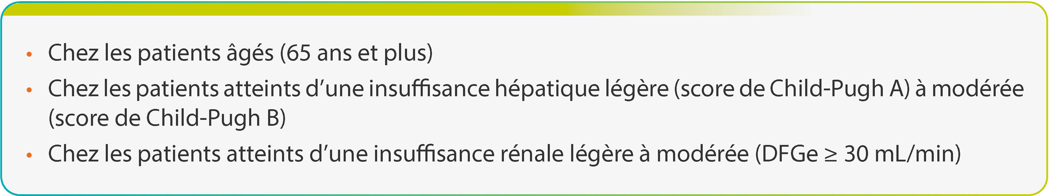 Pas d’adaptation posologique dans les cas suivants :